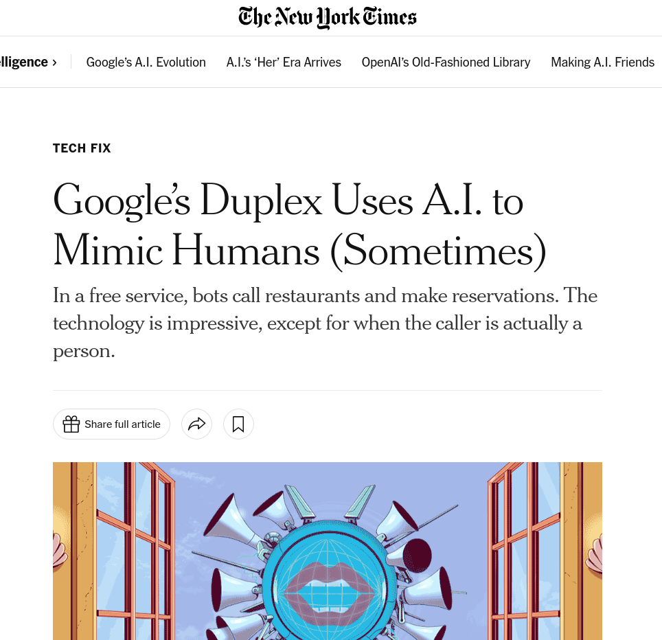 Traçons d'abord à travers le brouillard du bullshit. Google, comme le reste de la Silicon Valley, nous vend constamment une IA qui n'existe pas, une IA mensongère et fictive devenue la routine marketing. En 2018, la firme dévoilait un assistant vocal phénoménal, Duplex, capable de passer des coups de fil à votre place. La démo était probablement fausse, et le service était en réalité... un call-center. En guise d'IA, trois humains sous un imperméable. Rebelote en décembre 2023 avec la démo extraordinaire de son IA Gemini, qui était au moins partiellement scriptée. OpenAI, Microsoft et les autres font la même chose. L'IA n'est pas une course aux armements, c'est un concours de prestidigitateurs, face auquel le scepticisme par défaut devient la seule attitude saine. Il n'y a absolument aucune raison de croire que ce que Google nous montre reflète l'état de l'art de ses produits, et toute raison de penser que nous venons de voir un court-métrage d'anticipation publicitaire. Pourquoi ? Parce que la démo promet les