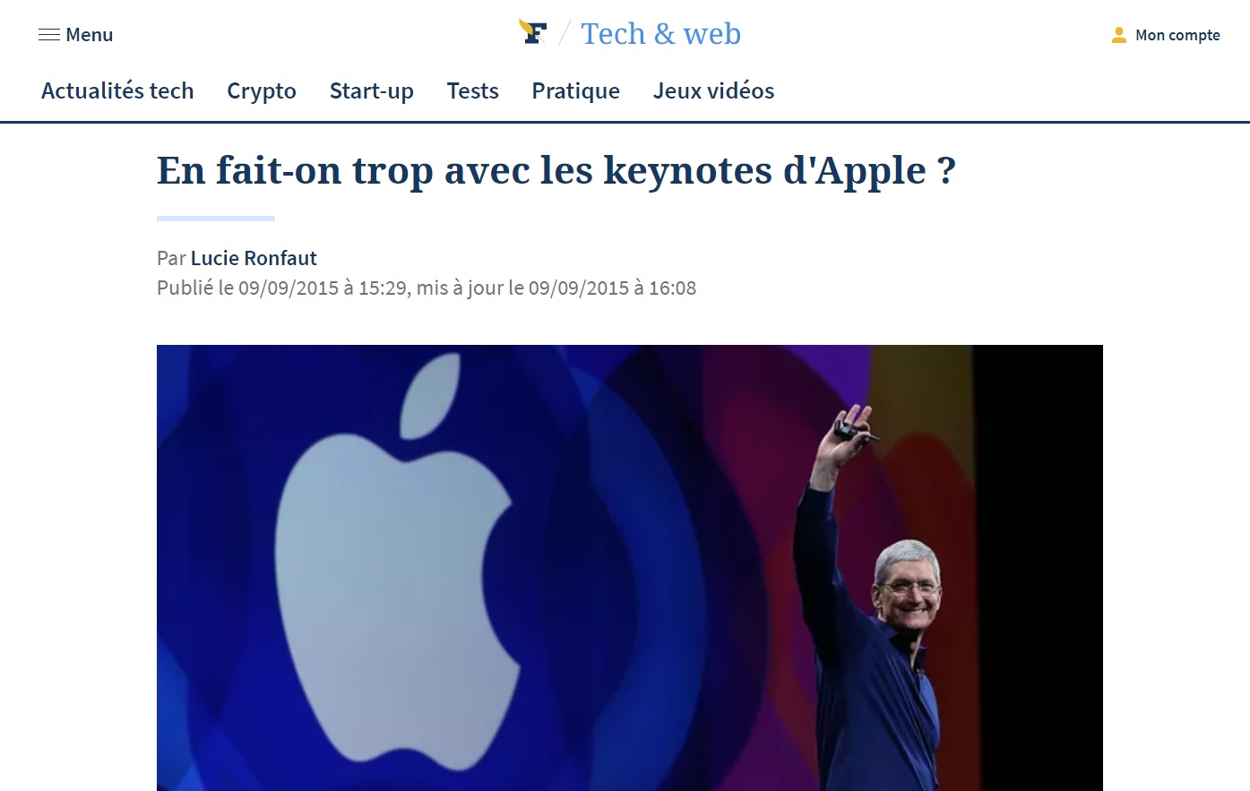Pourtant, rien n'a changé. Rien n'a changé depuis la jubilatoire chronique de Mat Honan pour Gizmodo qui, en 2012 (!), résumait le cycle médiatique d'une keynote : "Peu importe ce que sort Apple, les blogs enthousiastes y verront la Meilleure chose jamais créée (et nous en ferons partie). […] Ils démoliront quiconque ne pense pas de cette manière. Quelqu'un proposera une analyse différente. D'insupportables connards remarqueront que les composants hautement toxiques de ce truc sont éclaboussés du sang d'ouvriers mal payés." Aujourd'hui, c'est moi. Demain, un autre. En 2015, Lucie Ronfaut s'interrogeait déjà dans le Figaro : "En fait-on trop avec les keynotes d'Apple ?" Trop d'articles, peut-être, mais pas assez de journalisme, c'est certain. Il est une chose, pour reprendre les arguments de Lucie Ronfaut, de s'intéresser à la plus grande entreprise tech du monde, forcément prescriptrice de tendances, de modes de vie et de comportements numériques. C'en est une autre de le faire de manière critique, journalistique, en cessant de cautionner cette gênante entreprise d'autosatisfaction de la part d'un des défenseurs les plus acharnés de la surconsommation et de l'obsolescence. Promis, on n'en mourra pas, et on pourra même continuer d'utiliser les produits Apple dans son coin.
