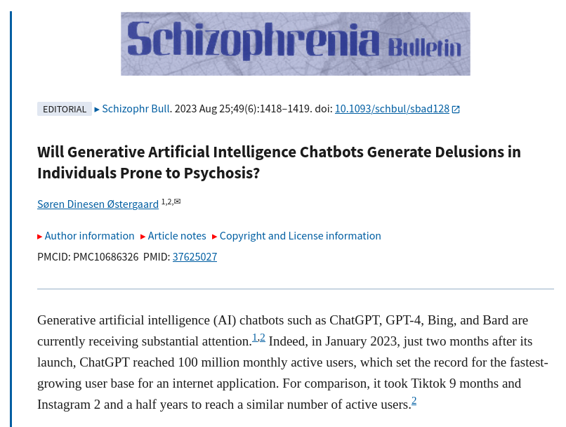 Pour tout autre secteur un tant soit peu régulé – on pensera immédiatement à celui des médicaments – un produit dont la consommation excessive génère des crises de délire paranoïaque pouvant conduire à l'automutilation, l'internement, le suicide voire le meurtre dans une telle proportion, serait a minima soumis à ordonnance et suivi médical. Dans le cas des médicaments, ce sont des effets secondaires indésirables : pour les chatbots, on ne le répètera jamais assez, c'est le but du système. Leur capacité de persuasion est même largement documentée : en août dernier, une étude relayée par le Financial Times démontrait encore que tous les principaux chatbots avaient la capacité de modifier des opinions politiques sur des sujets précis après seulement 10 minutes de conversation. Dès 2023, le psychiatre Søren Dinesen Østergaard anticipait, dans la revue médicale Schizophrenia Bulletin, que "la structure de l'IA générative encourage la spéculation et la paranoïa", et décrivait cinq scénarios délirants pouvant hypothétiquement émerger d'une interaction avec ces chatbots. À la lecture des différents cas médiatisés, trois de ces scénarios se sont déjà réalisés, avec des conséquences dramatiques. C'est donc tout sauf une surprise.