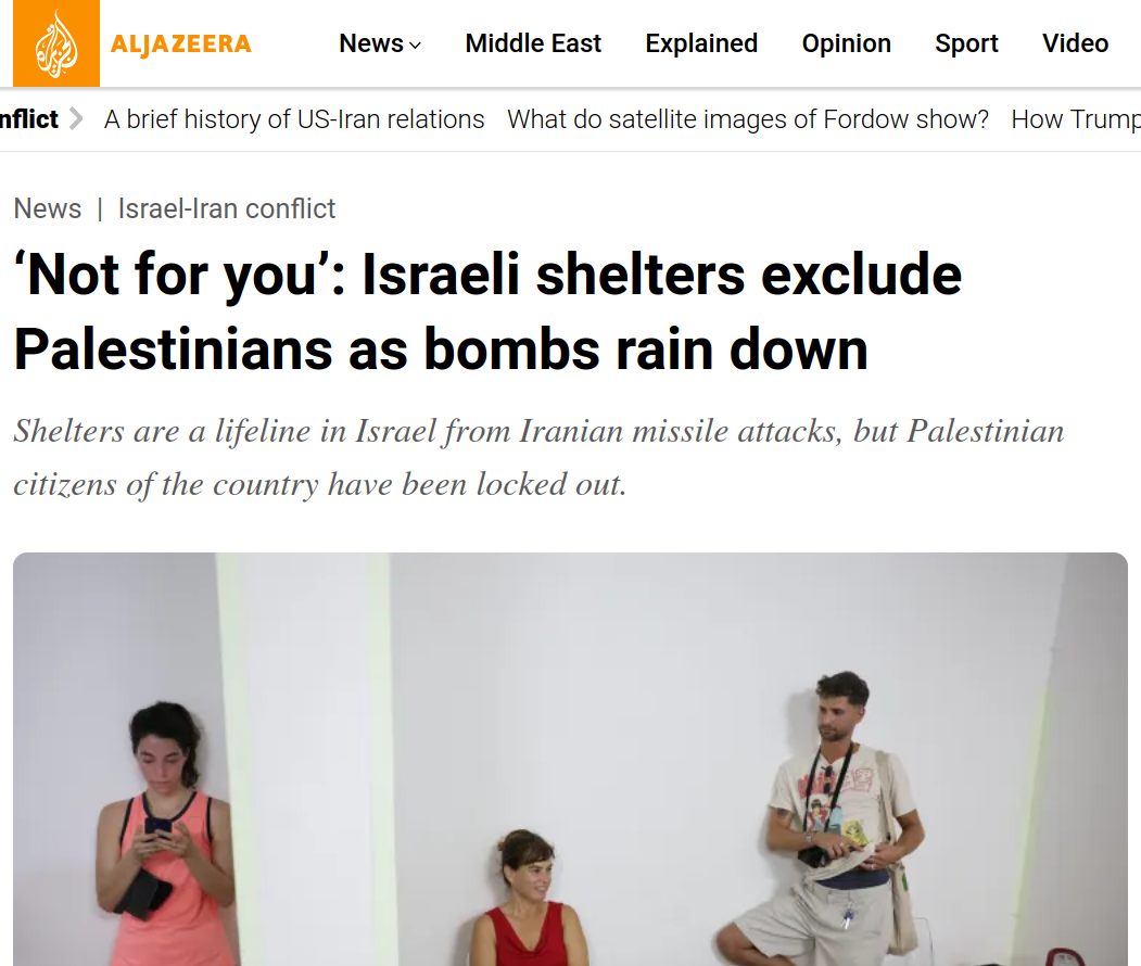 En 20 mois de carnage et 56 000 morts, la légitime défense est donc progressivement devenue la légitime barbarie. Au point où la majorité du corps social israélien soutient le sionisme version insanité exterminatrice, le sionisme indissociable d'un crime contre l'humanité. La démence ethno-nationaliste de Netanyahu ruisselle inexorablement jusqu'à sa population, jusqu'à ces Palestinien·nes installé·es en territoire d'Israël (21% de la population) privé·es d'accès aux abris anti-missiles par leurs propres compatriotes, laissé·es dehors sous les bombes iraniennes.