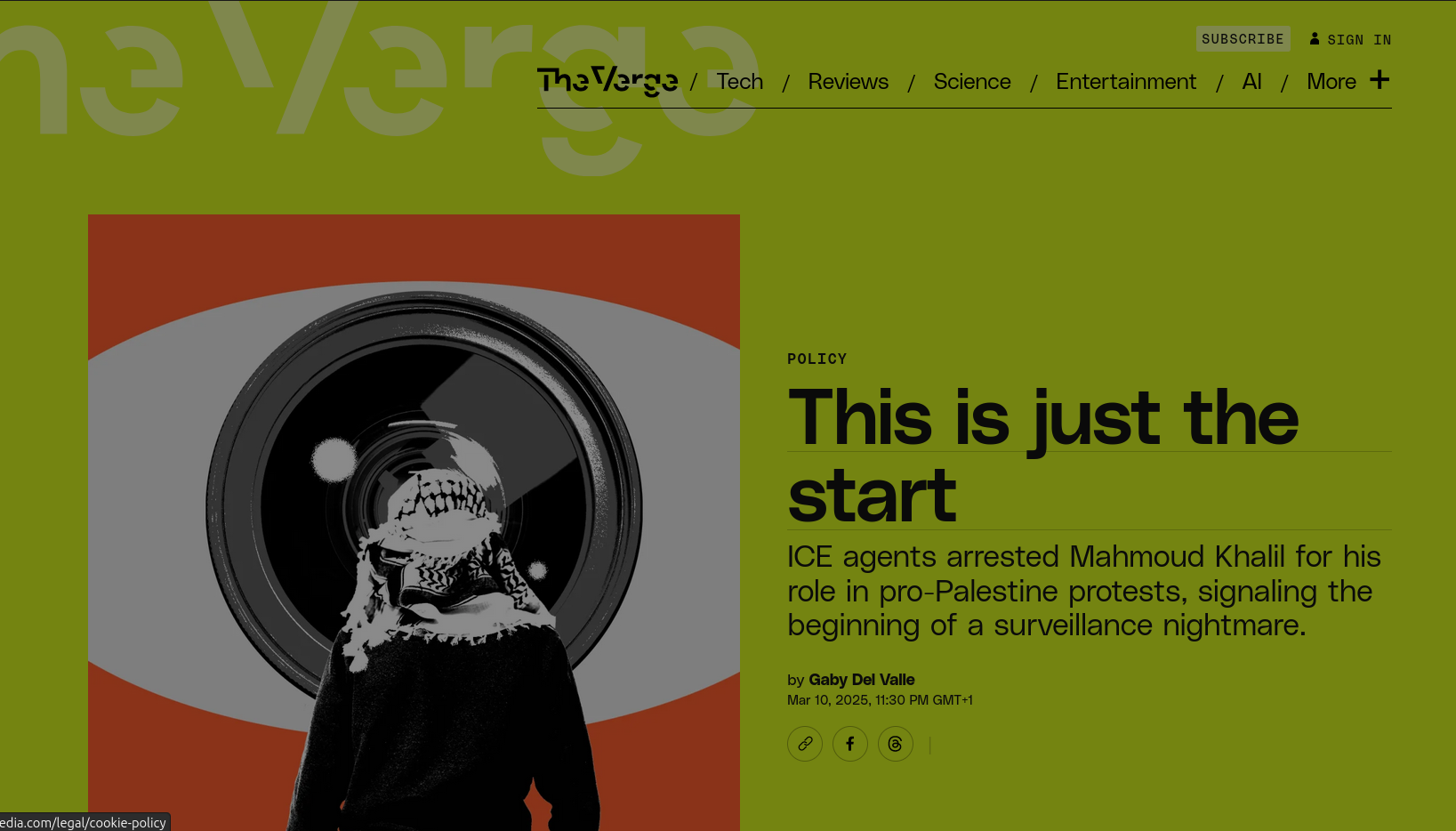 Mais l'actualité nous offre un cas d'étude plus terrible encore, un signe annonciateur du techno-fascisme structurel qui s'installe. Le 6 mars, le département d'État, l'équivalent du ministère des Affaires étrangères, annonçait l'utilisation de logiciels "d'IA" pour traquer automatiquement les étudiants étrangers considérés comme "militants pro-Hamas", et révoquer leur visa. Le 8 mars, Mahmoud Khalil, diplômé de l'université de Columbia en décembre et impliqué dans l'activisme pro-palestinien sur le campus l'année passée, était arrêté par la police aux frontières – la fameuse ICE, responsable des raids menés dans les écoles, de la gestion de la centaine de camps de détention installés sur le territoire étasunien (soit près de 41 000 lits) et des 18 000 déportations du mois dernier. Mahmoud Kahlil n'ayant commis aucun crime et, surtout, étant officiellement un résident permanent des États-Unis, The Verge a pour une fois un titre à la hauteur de l'information : "This is just the start", ou "Tout cela n'est qu'un début". Car tout ça n'est évidemment qu'un rodage. Sous le techno-fascisme de Musk et Trump, chaque citoyen devient un déporté potentiel, ses traces numériques analysées par une Gestapo algorithmique.