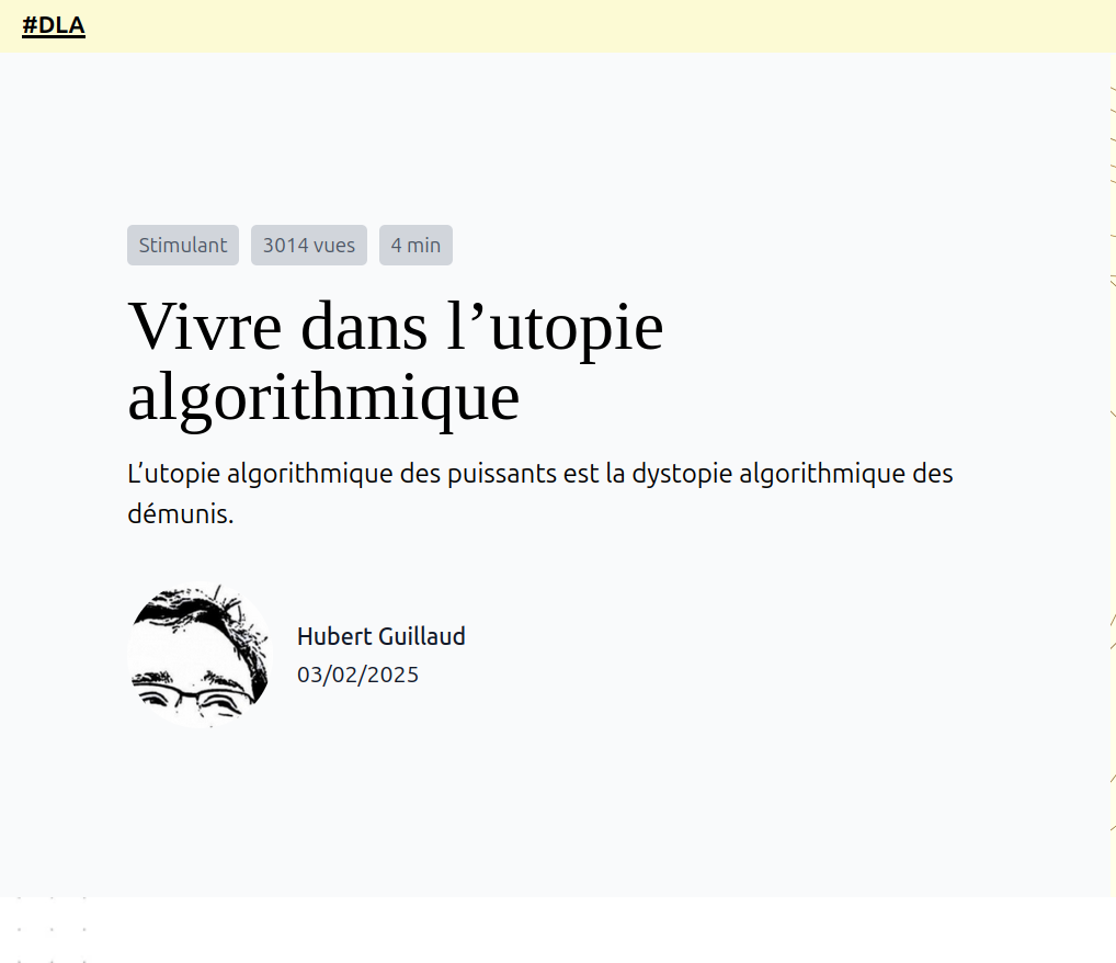 de l'incalculable lumpenscoretariat, plus la violence algorithmique tape fort, plus les conditions de vie se dégradent, plus les possibilités de contestation des mal-simulés se réduisent. Nuances, spécificités, imprévus disparaissent. L'horizon politique et social prend alors la forme d'une monoculture dystopique des idées, des identités et des opinions, éternellement standardisées et moyennisées. Tout le monde file doux et se conforme aux comportements attendus par le logiciel, éternellement inquiet de tomber dans une liminalité numérique sans possibilité de recours. Et "l'utopie algorithmique des puissants devient la dystopie algorithmique des démunis", conclut Hubert Guillaud.