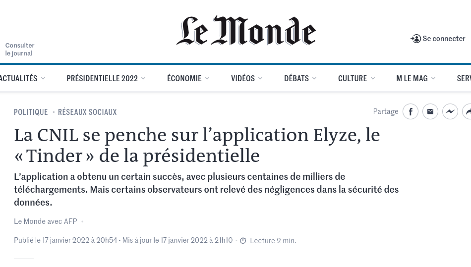 Ce n'est pas terminé : le 15 janvier, le chercheur en cybersécurité Mathis Hammel s'introduit dans le code source d'Elyze et ajoute une proposition politique à Emmanuel Macron – "Virer Jean Castex et nommer Mathis Hammel à sa place". L'appli est à nouveau mise à jour par les développeurs, mais ça commence à faire beaucoup. Suffisant pour que le 17 janvier, la Cnil se réveille du coma et annonce qu'elle se réserve le droit de "