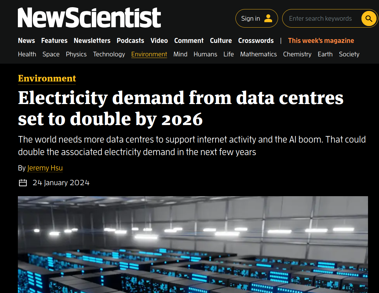 L'histoire de Data Center Alley est celle des États-Unis, de l'Occident et du monde. Tels des tumeurs du capitalisme informationnel, les centres de données prolifèrent à la surface du monde et, en véritables parasites énergétiques, captent et aspirent l'énergie autour d'eux. Les projections sont terrifiantes. Aux États-Unis, leur consommation électrique pourrait tripler d'ici la fin de la décennie pour atteindre 390 térawatts-heures. À l'échelle mondiale, leur consommation d'électricité pourrait plus que doubler entre 2022 et 2026, passant de 460 térawatts-heure (l'équivalent de la consommation électrique de la France en 2023) à plus de 1000 térawatts-heure. L'archipel de la donnée, dont un quart de l'activité sert à entretenir la fraude planétaire des cryptoactifs, consommerait alors autant d'électricité que le Japon, pays de 125 millions d'habitants. Le nuage magique a déjà une empreinte carbone supérieure à celle du transport aérien. Cette accélération de la catastrophe est directement imputable aux logiciels d'IA, dont les cartes graphiques consomment quatre fois plus d'énergie et nécessitent un refroidissement plus intense que les serveurs conventionnels.