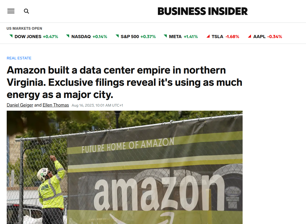 Comme l'industrie de l'IA, le marché du stockage cloud se concentre dans trois entreprises, appelés "Big Three" : Amazon Web Services (AWS), Microsoft Azure, et Google Cloud. Elles ont capté 60% des 270 milliards de dollars dépensés en 2023 pour l'hébergement de données. À Data Center Alley, les places sont chères. Amazon, qui a déjà dépensé 50 milliards de dollars en Virginie entre 2011 et 2021, va en remettre 35