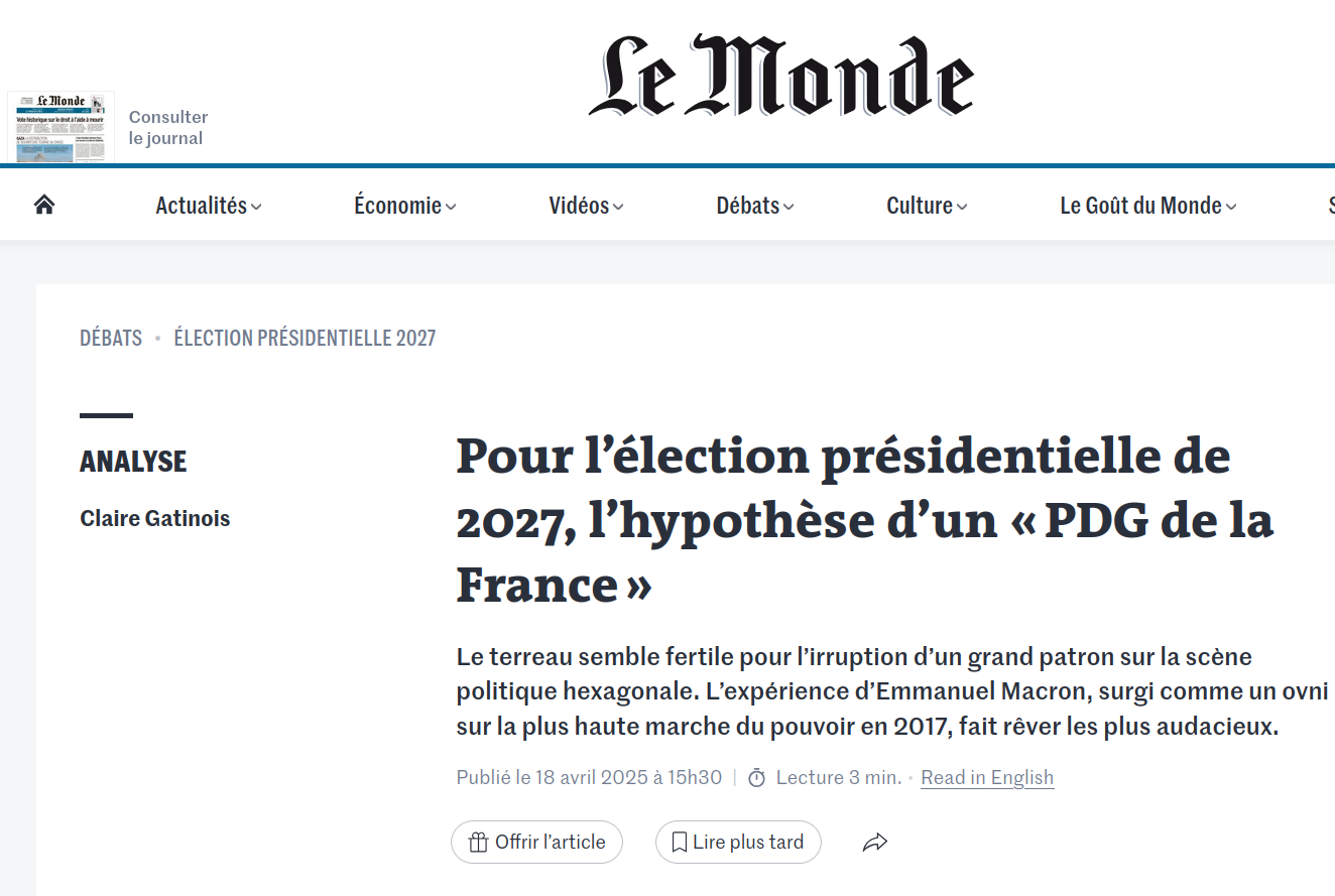 En 2025, une mystique politique agite les médias français : celle du patron-prêt-pour-être-président