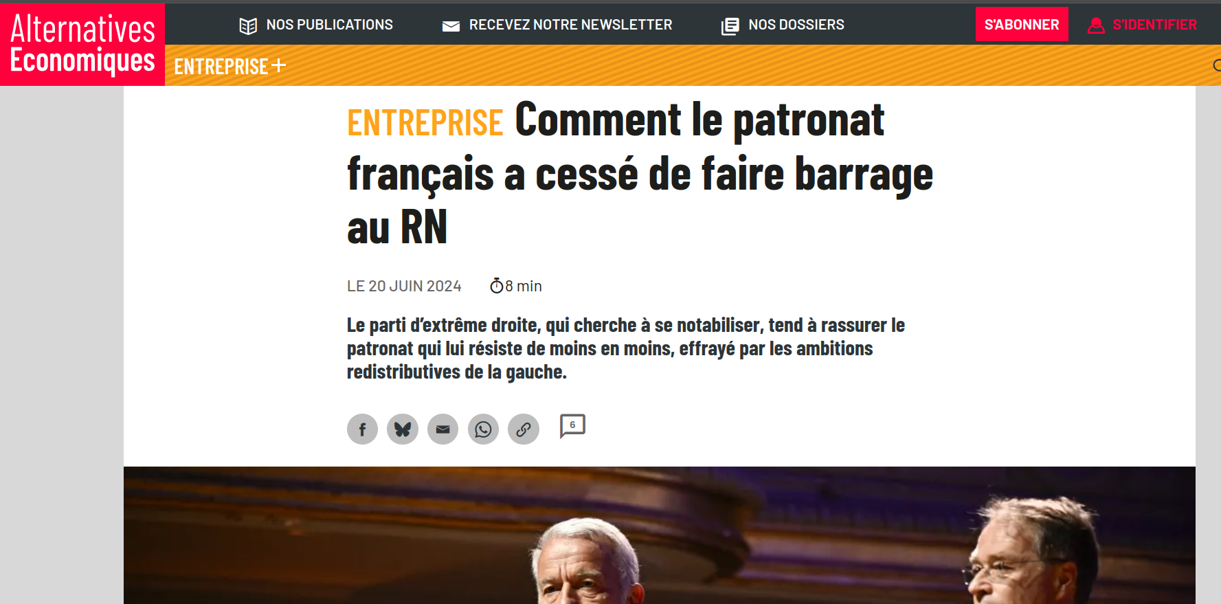 Cette classe d'ultrariches que l'on entendait jadis peu, préférant aux coups d'éclat médiatiques un lobbying de murmures avec l'exécutif, ne passe plus une semaine sans performer une parole de rupture et de jérémiade. Rupture avec la tradition républicaine du "barrage" à l'extrême-droite lors des législatives, au profit d'un "ni-ni" mettant davantage l'accent sur la "menace" du Nouveau front populaire. Rupture, ensuite, avec les programmes économiques des partis, y compris à droite, avec la création du "front économique", un think tank lancé par le Medef en octobre qui, on l'imagine, imaginera bientôt toute une série de politiques économiques contre-révolutionnaires pour "redresser" le pays dans la direction des grandes fortunes.