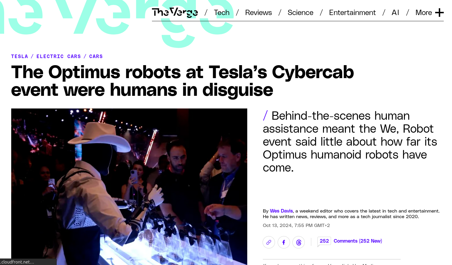 Nous savons que tout est toujours du baratin, le même baratin depuis près d'une décennie. Que les robotaxis autonomes n'existent pas. Pas plus qu'en 2015, lorsque le milliardaire les annonçait pour 2017, ou qu'en 2019 lorsque Musk en annonçait "un million sur les routes l'année prochaine". Qu'à l'heure où les concurrents Waymo et Lyft s'embourbent, ils n'existeront probablement jamais, pas plus que la conduite entièrement automatique, qui se résume souvent à un trajet pré-enregistré ou à des téléopérateurs déguisés. Que Tesla, qui continue néanmoins de vendre des véhicules dotés d'une "conduite autonome" (Self Driving), est sous le coup d'une enquête pour publicité mensongère. Que son minibus rétrofuturiste n'est qu'une manière - comme l'était en son temps l'arnaque de l'Hyperloop - de lutter activement contre toute politique de développement des transports publics (que Musk déteste, notamment car il déteste l'idée d'être "enfermé avec des inconnus, parmi lesquels de potentiels tueurs en série"). Tout est mystification, trompe-l'oeil, prestidigitation. Elon Musk a menti, ment, mentira encore. Le plus rageant, c'est que ça fonctionne encore, et que certains journalistes prennent encore les inepties de Musk pour "le futur des villes" (dixit le Financial Times), alors qu'une simple vérification indique que la technique n'existe pas. Mais après tout, des passants se font encore avoir au bonneteau.