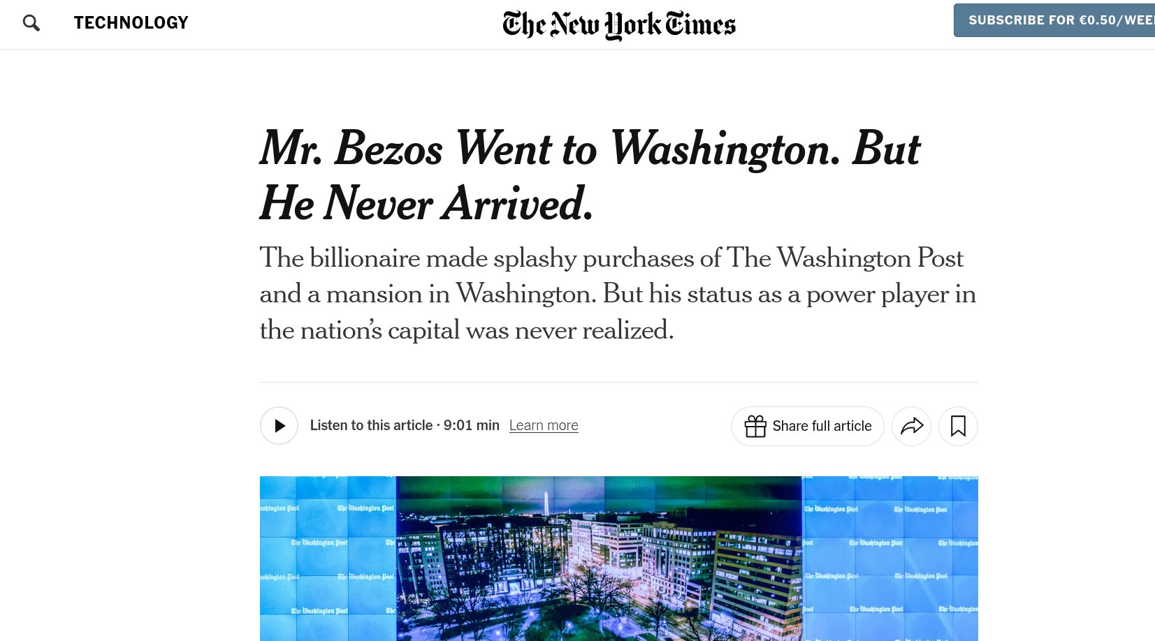Tim Cook, Sundar Pichai, Mark Zuckerberg et Andy Jassy, PDG d'Amazon, ont tous appelé Trump après sa tentative d'assassinat. En ordre de bataille. De Wall Street à la Silicon Valley, le capital, sans complètement prêter allégeance, se retranche désormais dans une position de "neutralité" prudente – sachant pertinemment que le profit s'épanouit aussi bien sous l'impérialisme que sous le fascisme. Jeff Bezos, propriétaire du Washington Post, qui n'a jamais réussi à devenir un poids lourd de Washington et n'a jamais caché son appétit pour les contrats militaires à plusieurs milliards de dollars, est allé plus loin. Le 27 octobre, il a refusé de publier le soutien du journal à Kamala Harris, brisant une tradition vieille de 36 ans. Ne pas choisir, c'est choisir. Le même jour, le PDG de Blue Origin rencontrait Donald Trump, après une longue période de défiance entre l'empire Bezos et l'ex-président. Democracy dies in darkness, affirme le slogan du journal. On sait désormais que c'est faux : la démocratie crève en plein jour, de son incompatibilité intrinsèque avec l'accumulation capitaliste.