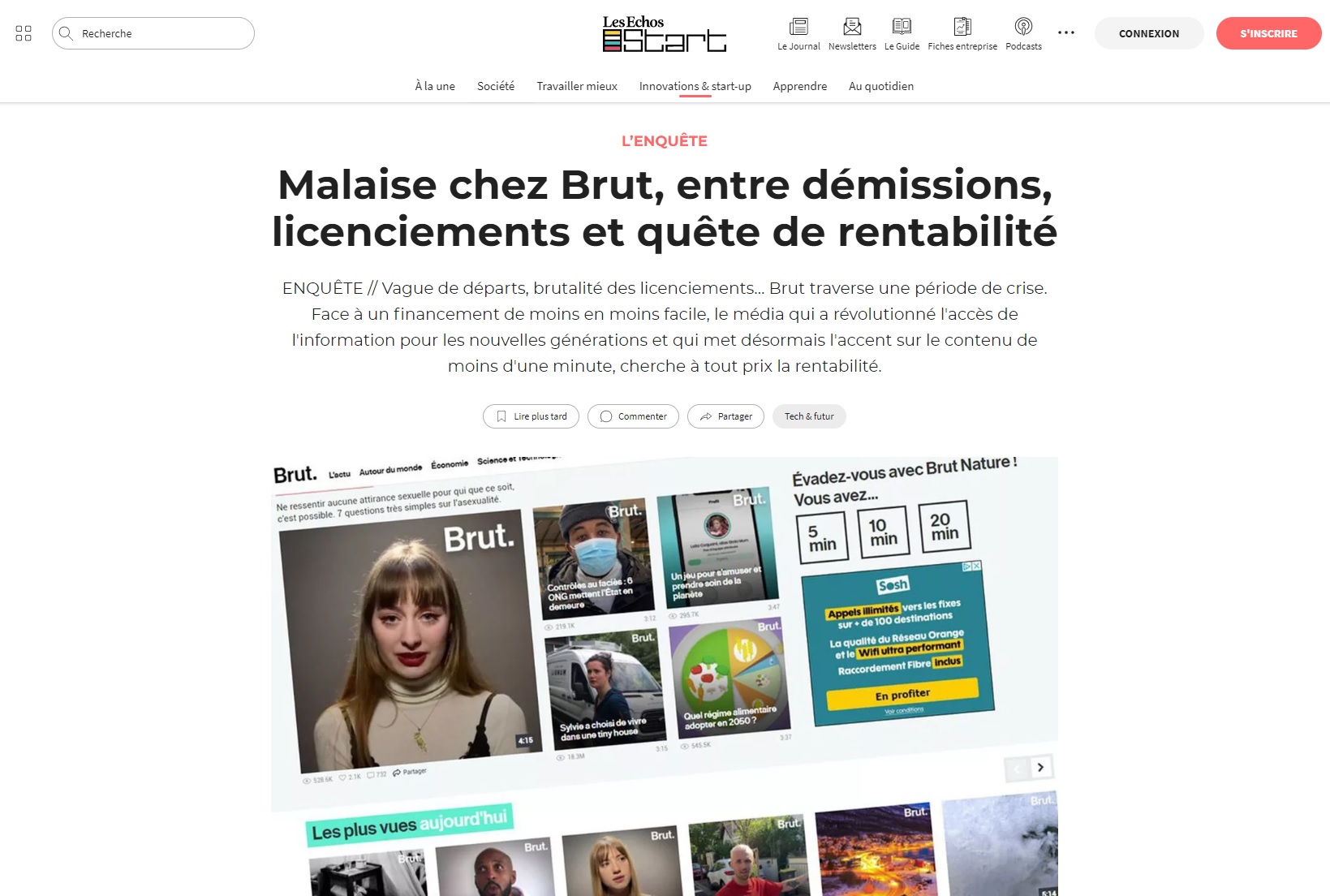 Après avoir connu une "hypercroissance" et levé 109 millions d'euros depuis 2016, le média doit désormais "optimiser ses ressources", y indique le cofondateur et dirigeant de Brut Guillaume Lacroix. L'objectif : doubler le chiffre d'affaires en 2022, et faire de même en 2023, afin de s'émanciper des investisseurs. Traduction ? Faire un nettoyage manu militari d'une partie des équipes (d'après le Monde, l'équipe de Brut America a ainsi été réduite de 42 salariés en janvier dernier à 20 actuellement, sans préavis). Et accélérer la production de contenus pour les marques, la capacité à leur vendre de l'attention passant avant tout le reste, info comprise. "L'enjeu est surtout de faire grossir sa communauté pour vendre plus cher son contenu dit brand content", résumait plus sobrement les Échos.