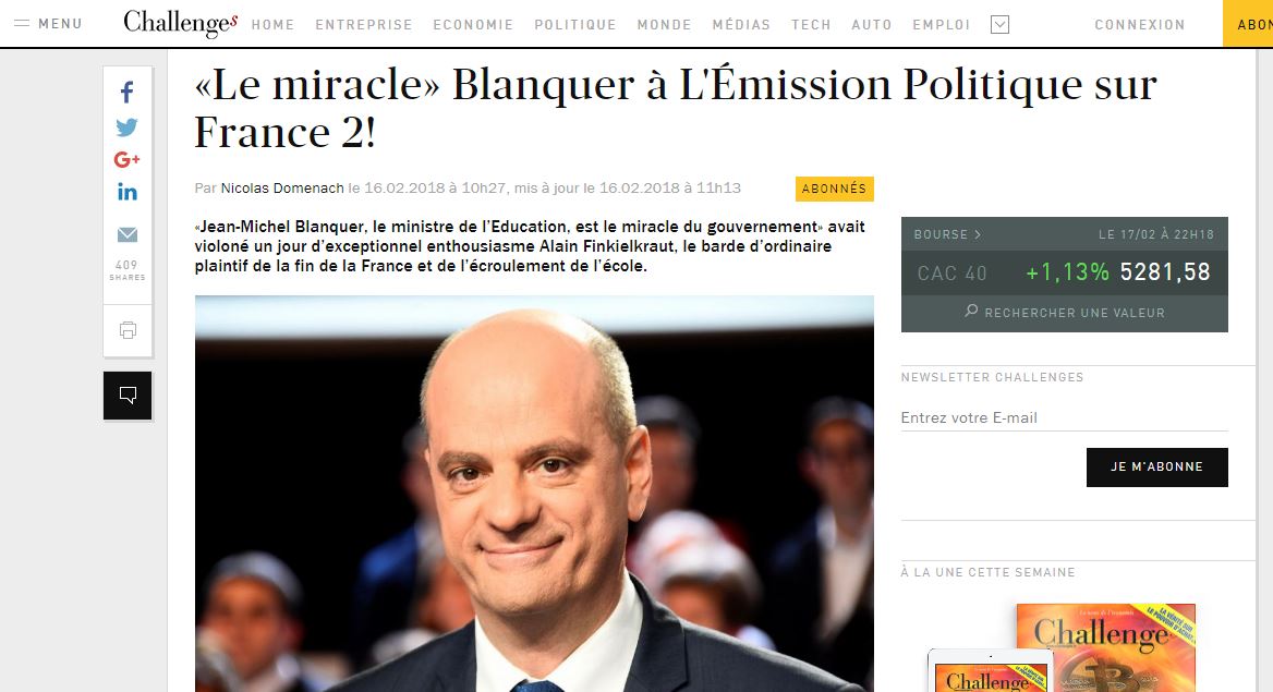 France 2 : Bonne note pour Blanquer (mais l’épreuve était un peu truquée)
