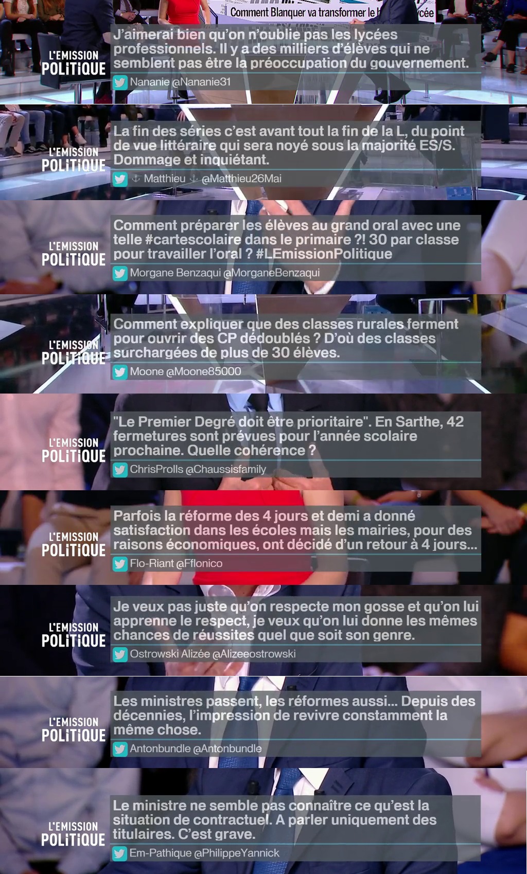 . Des courts extraits qui permettent d’en remettre une louche sur les compétences du ministre : “Le ministre de l’Education nationale M. Blanquer est plutôt quelqu’un en qui j’ai de l’estime”