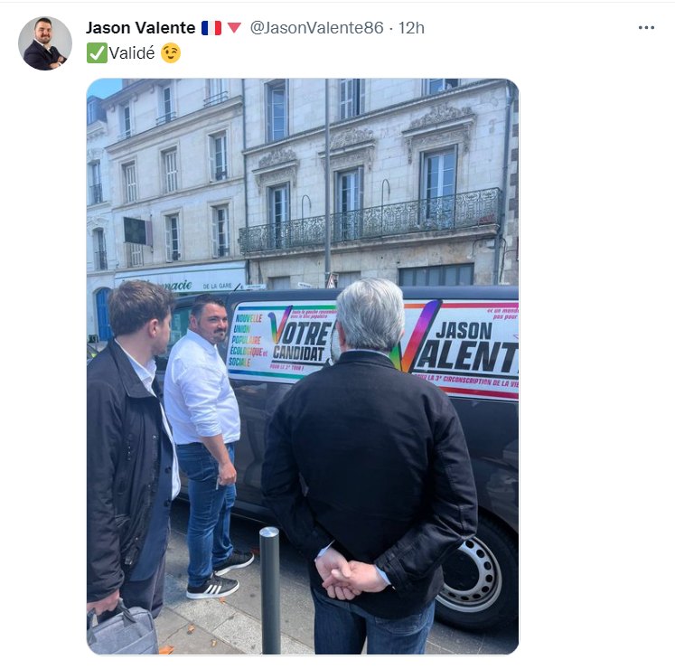 ) a été acheminée depuis la gare dans son van de campagne customisé par Jason Valente, candidat LFI dans le sud du département. Commercial en extincteurs, le candidat, 31 ans, a promis, en cas d'élection, de plafonner son salaire de député à 1850 euros, pour lutter contre la déconnexion entre "les fâchés"
