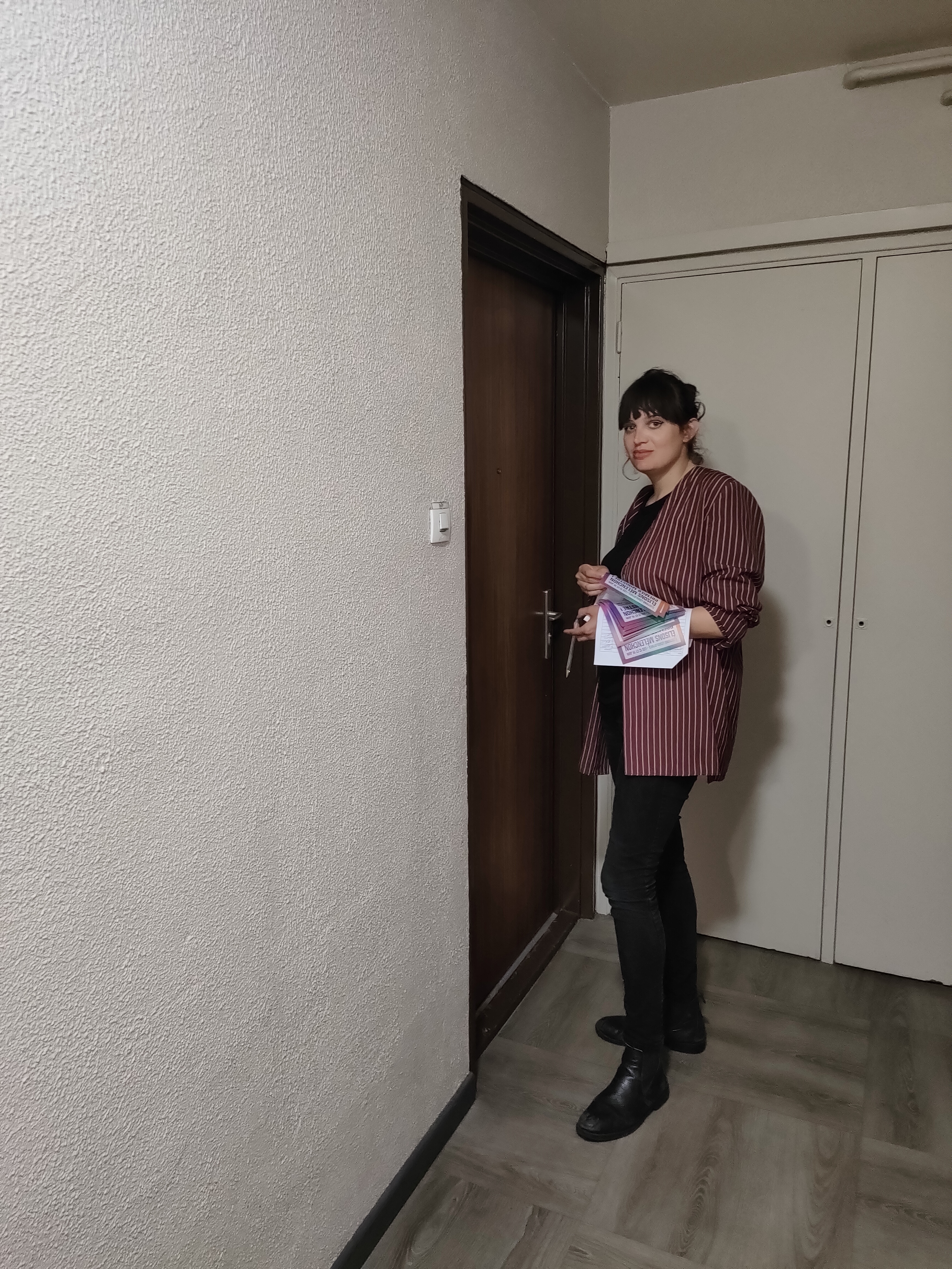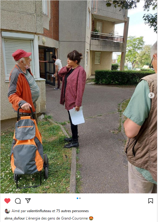 la banlieue de Rouen), ses tracts sous le bras, – "pardonnez-moi de vous déranger, je suis la candidate de Monsieur Mélenchon" –