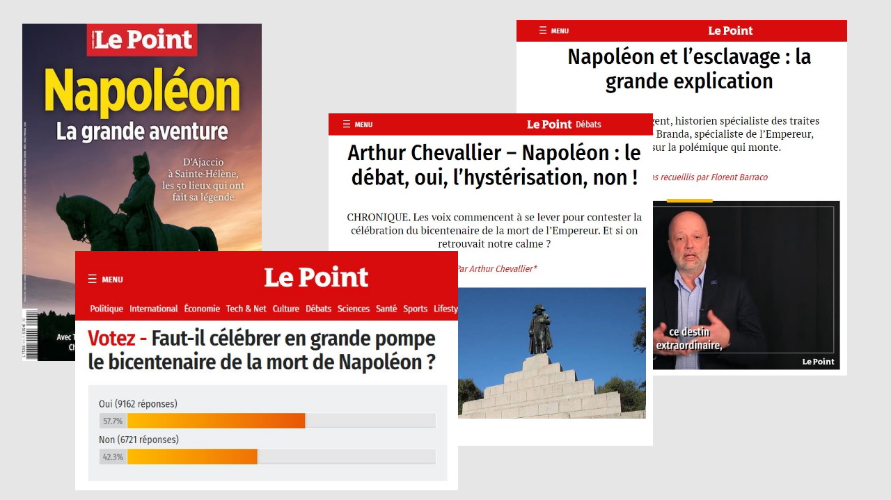assure Chevallier. Souvenir inverse du bouillonnant Thierry Lentz, directeur de la fondation Napoléon. "Au début, les organisateurs se demandaient, est-ce qu'on fait une expo de beaux objets, ou un biopic ? Je leur ai conseillé les beaux objets. Ils ont voulu le biopic. Et c'est là que le directeur de la Réunion des Musées Nationaux a dit «Il faudra parler de l'esclavage.» Ayrault avait menacé de gâcher la fête en appelant toutes les expos en préparation".