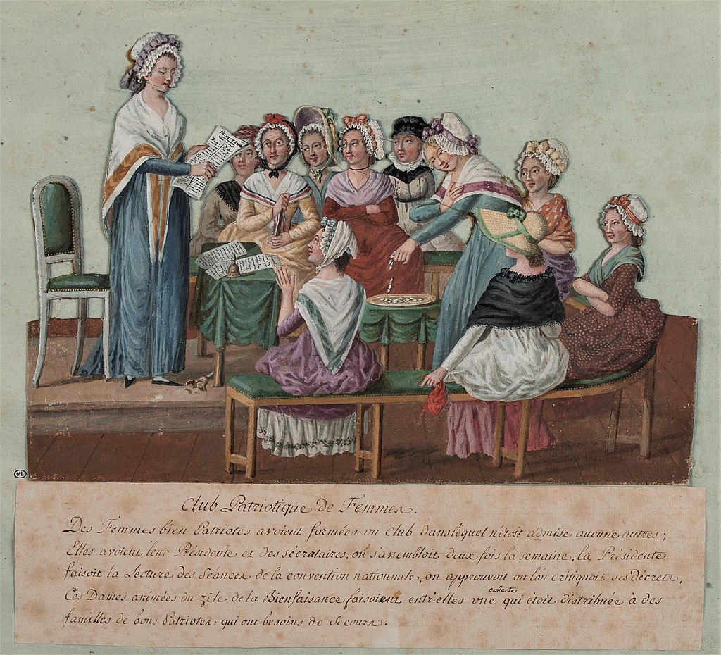 De fait, la Révolution a restreint les droits politiques des femmes, sans porter atteinte aux droits civils qu'elle leur avait accordés, à l'égal des hommes. Le "club féminin" dont parle Chevallier est en fait la Société des républicaines révolutionnaires, fondée en , par une chocolatière et une comédienne. C'est un groupe féminin non-mixte, comme on dirait aujourd'hui, aux revendications sociales et féministes. Leur soutien aux Enragés va se heurter à l'hostilité des Conventionnels et des Hébertistes. Et, prenant prétexte d'une altercation du groupe avec des dames de la Halle, à propos de l'obligation du port du bonnet phrygien, la Convention dissout le groupe en octobre 1793, et interdit par la même occasion les associations de femmes. Mais encore une fois, cette répression s'exerce sur les droits politiques, et non sur les droits civils.