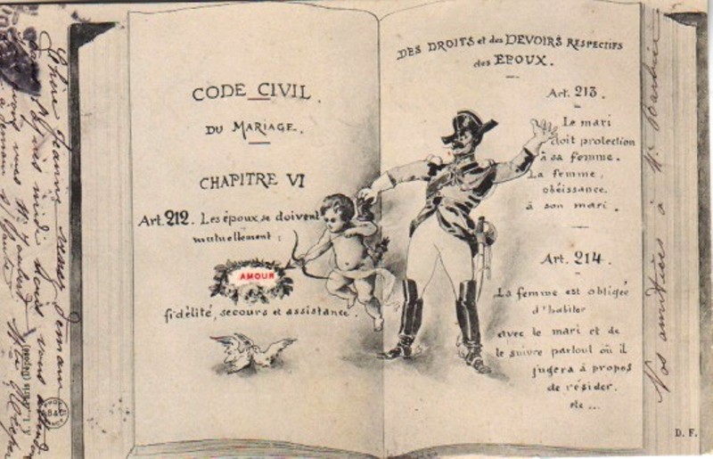Pourtant, la responsabilité du Code Napoléon dans la soumission de la femme n'est pas seulement soulignée depuis le début de la cancel culture. Voici un siècle déjà...