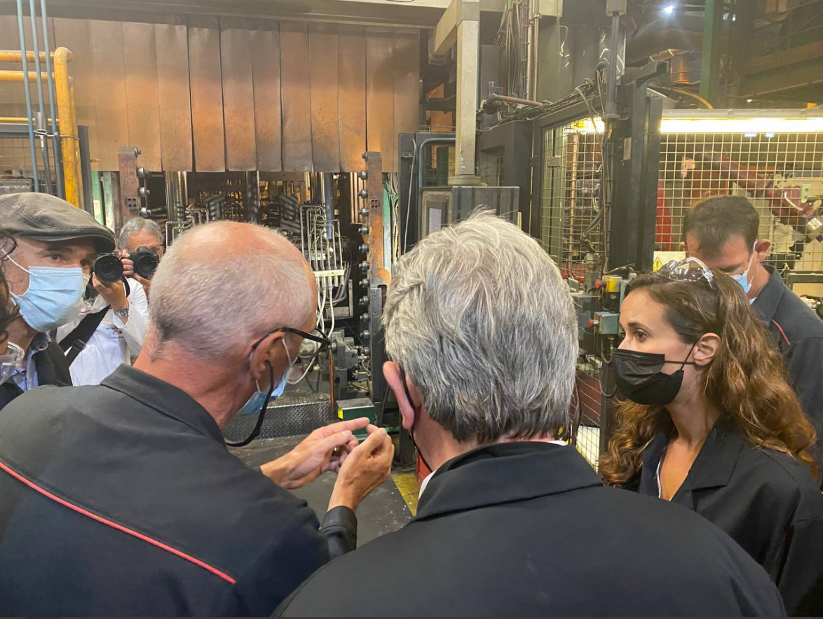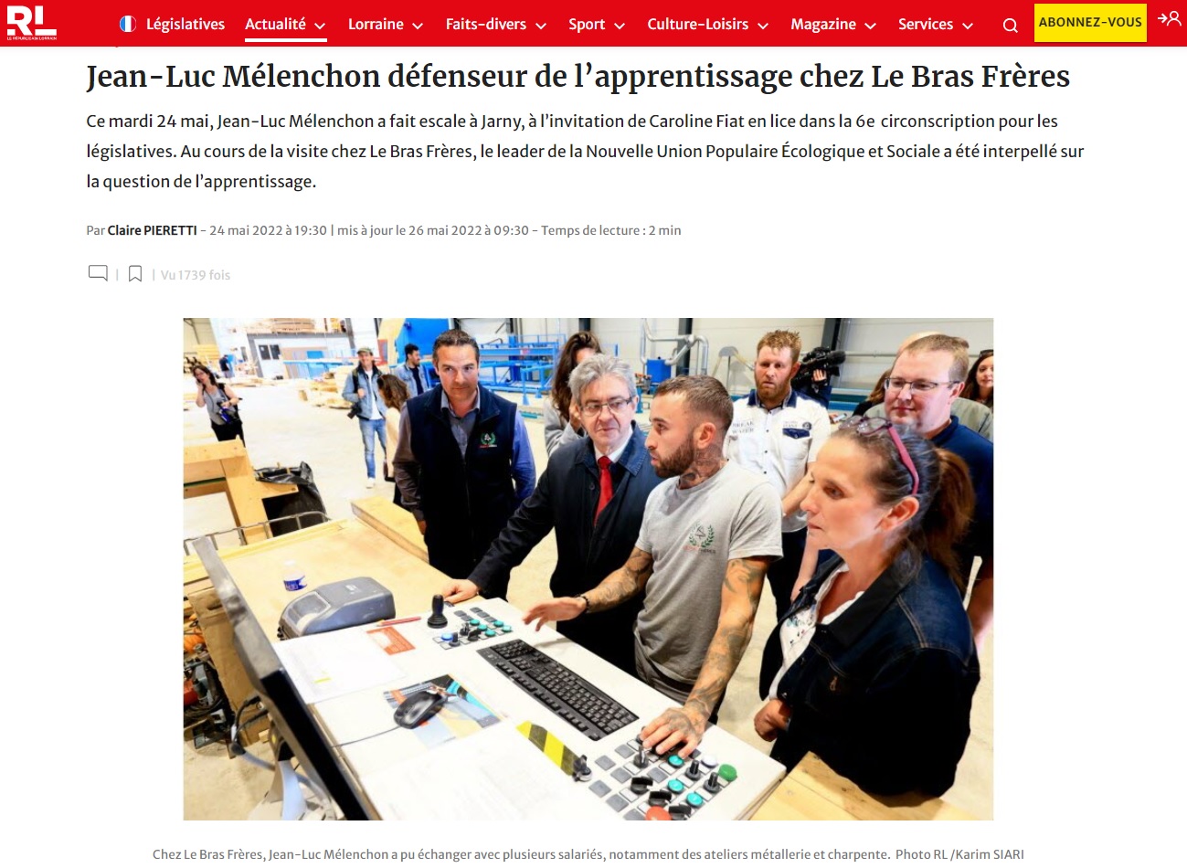 Le candidat Nupes de la 4e de la Vienne, Flavien Cartier, qui prend la parole derrière son dos, est ouvrier de la société Fonderies du Poitou, promise à la liquidation judiciaire, et qu'il a visitée l'an dernier, au moment des élections régionales. Ce bourdonnement d'atelier. Cette vision de blouses bleues. Cette lutte contre la fermeture, au nom du savoir-faire français. Et puis aussi tout simplement l'usine. L'industrie. La production. Ce génie des mains, qu'il ne possède pas – "Je n'ai aucun sens pratique, je ne sais rien faire" –