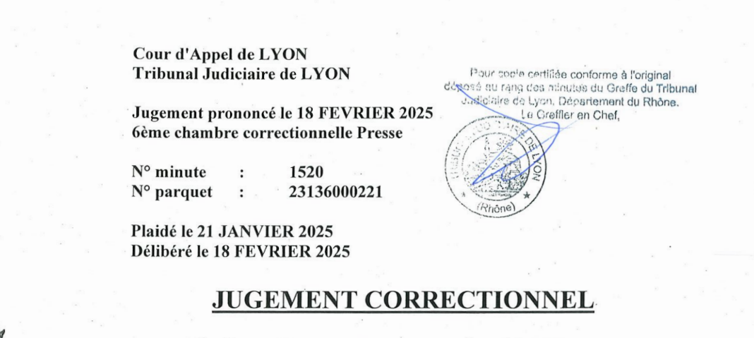 . Nous avons ensuite été convoqués à comparaître devant la 6ème chambre Presse du tribunal correctionnel de Lyon, en janvier dernier.