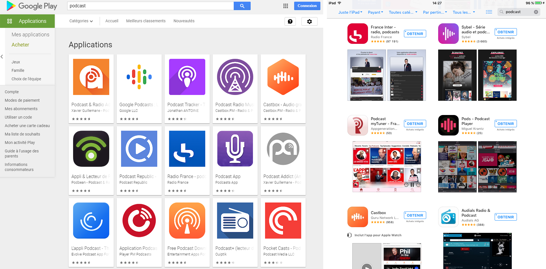 Pour lire ces podcasts, vous devez utiliser une application dédiée. Il en existe de nombreuses disponibles sur l'App Store d'Apple, ou le Play Store Android.
