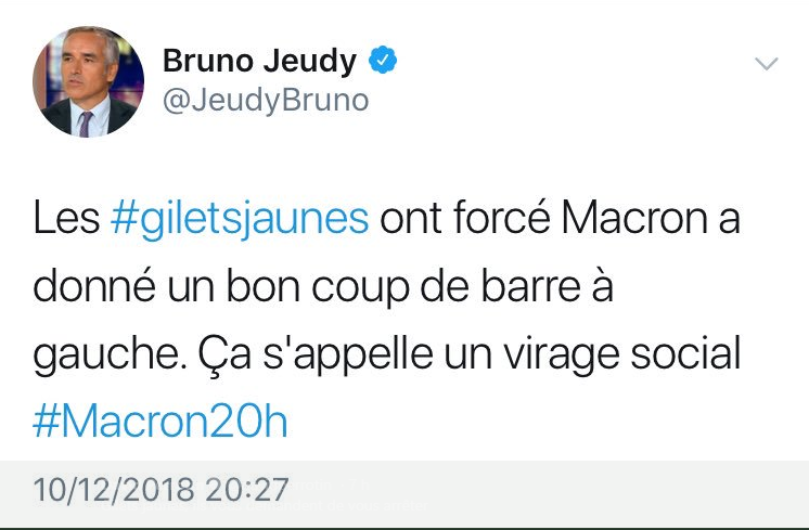 A peine la diffusion de l'intervention terminée (elle était en différé, les rédactions ont donc pu la visionner avant tout le monde), les éditocrates, eux, ont tranché. Il y a du lourd, du substantiel, c'est un tournant, un virage, un acte deux, on ne voit pas pourquoi ils ne les enlèveraient pas, leurs gilets, il est temps de sortir de la "séquence", de passer à autre chose.