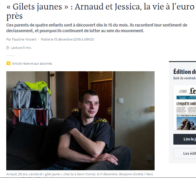 Ce second article, titré "Pourquoi le quotidien d'un couple de Gilets jaunes dérange les lecteurs du Monde"