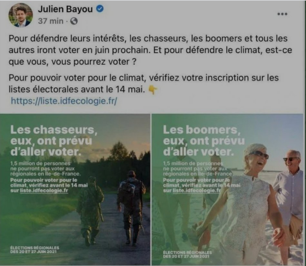 le visuel "boomers" de la campagne de sa liste, ce visuel associant âge, richesse et insouciance coupable, qui a déclenché le scandale virtuel du week-end. "Je ne l'avais pas validé, mais j'en prends la responsabilité"