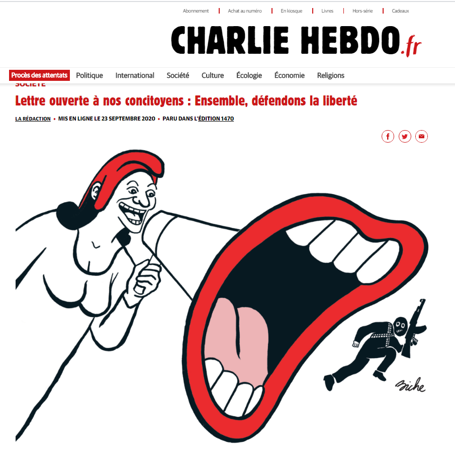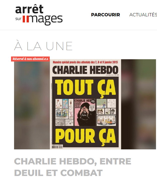 était plus explicite sur son site, qui distinguait, à l'occasion de l'ouverture du procès des attentats de 2015, les médias ayant republié à la Une les fameuses caricatures, et ceux qui ne l'ont pas fait (Ouest France