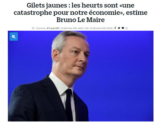 n'ont-ils pas voulu faire trop de peine au gouvernement français. Lequel, par la voix de Bruno Le Maire, lors d'une visite aux commerçants parisiens, expliquait en décembre que les manifestations de Gilets jaunes étaient "une catastrophe"