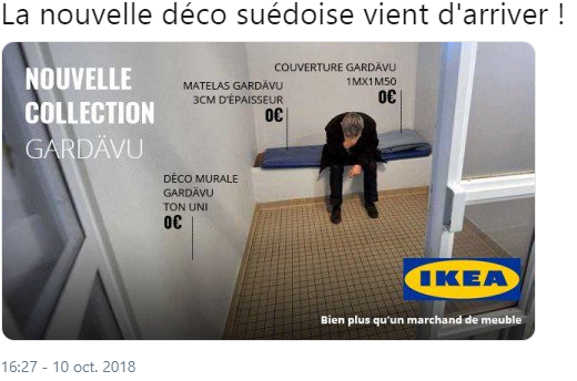 La suite, c'est aussi le parcours ordinaire du "bad buzz" pour la firme d'étagères suédoises en kit. A l'heure où j'écris, le récit d'Emilie a été re-tweeté 40 000 fois, et a récolté 37 000 petits coeurs. Des journaux sérieux, des radios sérieuses, se sont jetées sur la garde à vue d'Emilie. Ikea s'est platement excusée. Elle a assuré qu'en temps ordinaire, quand les clients oublient de scanner les couvercles, elle "privilégiait le dialogue"