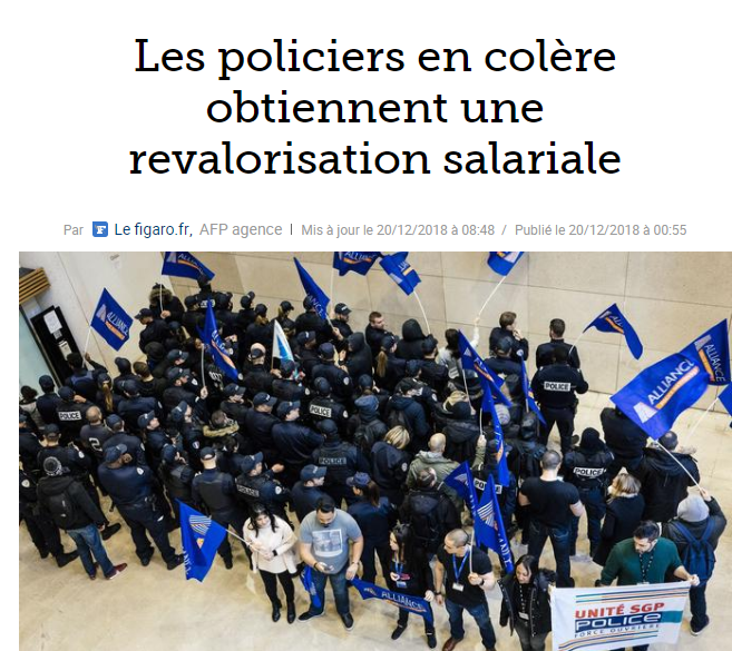Cette fois c'est clair, précis, prouvé, Todd avait raison, et je suis en mesure de le confirmer ici, le mouvement des Gilets jaunes est bien un complot. Pas des Russes. Des policiers. Qui viennent d'obtenir, eux, une revalorisation salariale, après un mouvement revendicatif...d'une journée. Allez vous rhabiller, smicards en jaune, avec vos trophées en chocolat ! C'est bien une augmentation de 120 à 150 euros net, que les policiers vont observer sur leurs feuilles de paie. Une vraie. Qui compte pour la retraite.