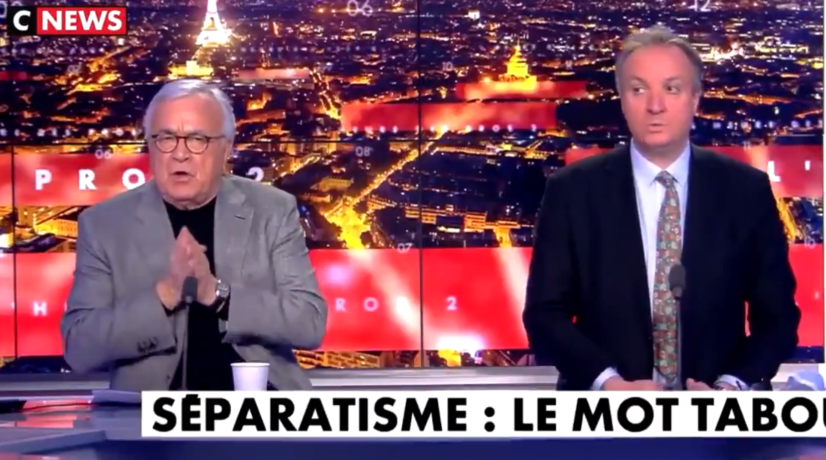 s'envole l'ex-journaliste Jean-Claude Dassier, buffet indéplaçable de toutes les émissions de CNews. Alors Praud : "Qu'est-ce que vous voulez dire ? Des musulmans, mais pourquoi vous dites Noirs ? Quel est le rapport ?"