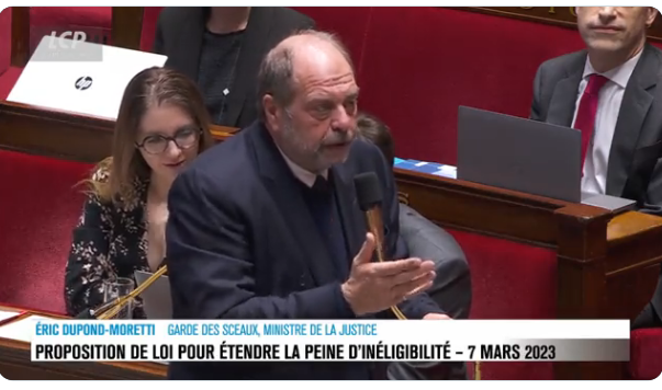 Pour se faire une idée claire du mauvais geste, il faudrait la vidéo, comme au foot. Mais la vidéo n'existe pas. Sauf peut-être dans les archives de la captation des séances à l'Assemblée. Marleix l'a demandée à Braun-Pivet. Yaël Braun-Pivet, vous vous souvenez, cette présidente de l'Assemblée qui garde un œil sévère sur les zadistes de la France Insoumise. Heureusement, ce n'est pas elle qui présidait ce jour-là. Qu'est-ce qu'elle lui aurait mis, à Dupond-Moretti ! (Breaking news : elle est intervenue en coulisses, pour convaincre le présumé innocent de s'excuser).