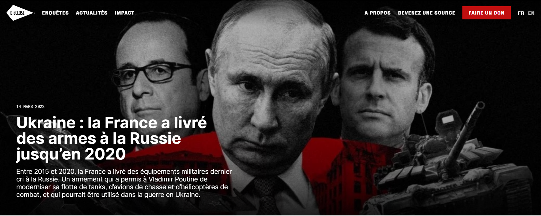 . Et Emmanuel Macron, fait-on valoir, "a toujours tenté de maintenir un dialogue avec Vladimir Poutine, mais a, en même temps, poussé les exportations à destination de l’Ukraine, dont le montant des commandes acceptées est passé de zéro en 2015 à plus de 97 millions d’euros en 2020"