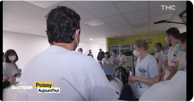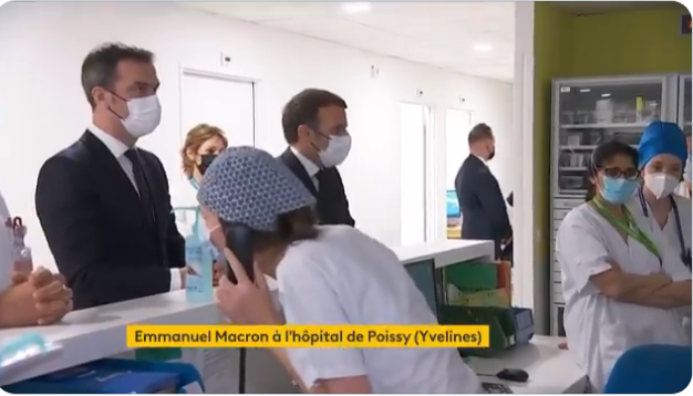 D'ailleurs, rien ne se passant comme prévu, cette visite à l'hôpital de Poissy tourne au fiasco. L'image qui en surnage est celle du président s'adressant à trois soignantes qui lui tournent le dos (regardez, c'est presque aussi beau que la visite Potemkine d'Anne Hidalgo, le même jour, dans les profondeurs ouvrières de la ville de Douai).