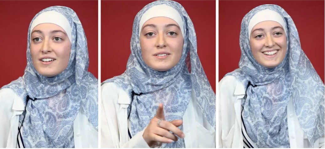 de son hijab, elle répond "mon voile n'a aucune fonction politique. C'est ma foi."