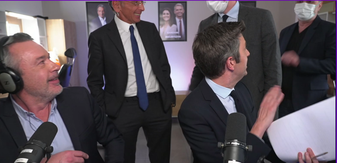 Après deux heures quarante de Zemmour sur la vieille BFMTV, arrive méta-Zemmour. On est sur la chaîne Twitch de BFMTV. On parle aux jeunes. Et les jeunes étant forcément sympas, on est sympas. Déjà, sur la chaîne historique, Maxime Switek et Bruce Toussaint ont été sympas. Si sympas que Zemmour, se sentant à l'aise, a officialisé pour la première fois : "Sarah Knafo, ma collaboratrice, ma... compagne"
