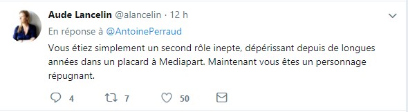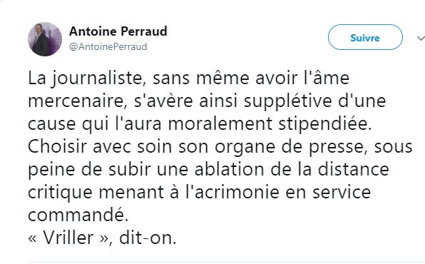 (dont Edwy Plenel) avaient, en effet, retweeté des tweets relatifs à l'éviction de Aude Rossigneux, et aux démissions consécutives. A quoi Antoine Perraud, journaliste "culture" à Mediapart