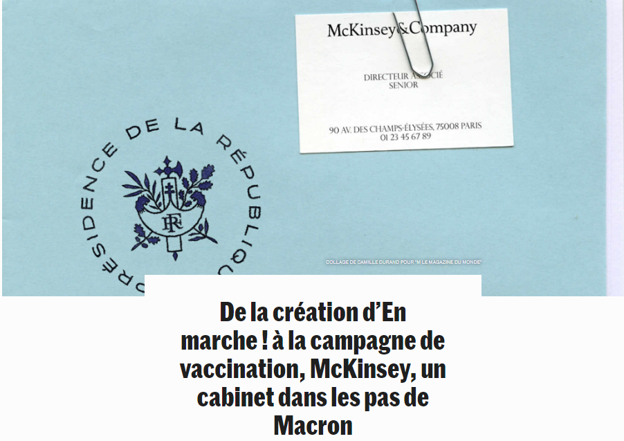 révélait le rôle du cabinet de consultants McKinsey dans l'élaboration du plan français de vaccination. Sans doute ce petit scoop a-t-il fouetté la curiosité de l'enquêteur du Monde