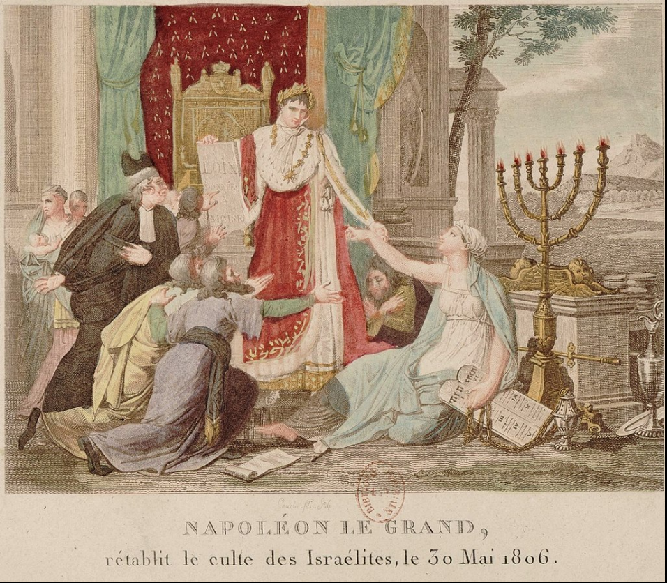 Est-ce à dire que Napoléon est "aussi" raciste à l'égard des Juifs que des Noirs ? Disons que c'est un racisme... symétrique. A l'opposé de sa politique envers les Noirs (rétablissement de l'esclavage, et interdiction des mariages mixtes, comme raconté ici), il mène envers les Juifs une politique partiellement assimilationniste, en encourageant ces mêmes mariages mixtes, comme le montre le questionnaire soumis aux membres d'une Assemblée des notables juifs, réunie en 1806.