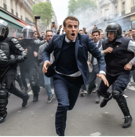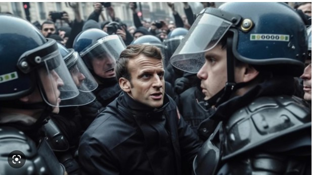 fait sa Une ce vendredi matin 14 avril, semble d'abord irréelle. Cette mer de casques, à perte de vue, cette ligne de boucliers : on dirait les flics des photos de Midjourney.