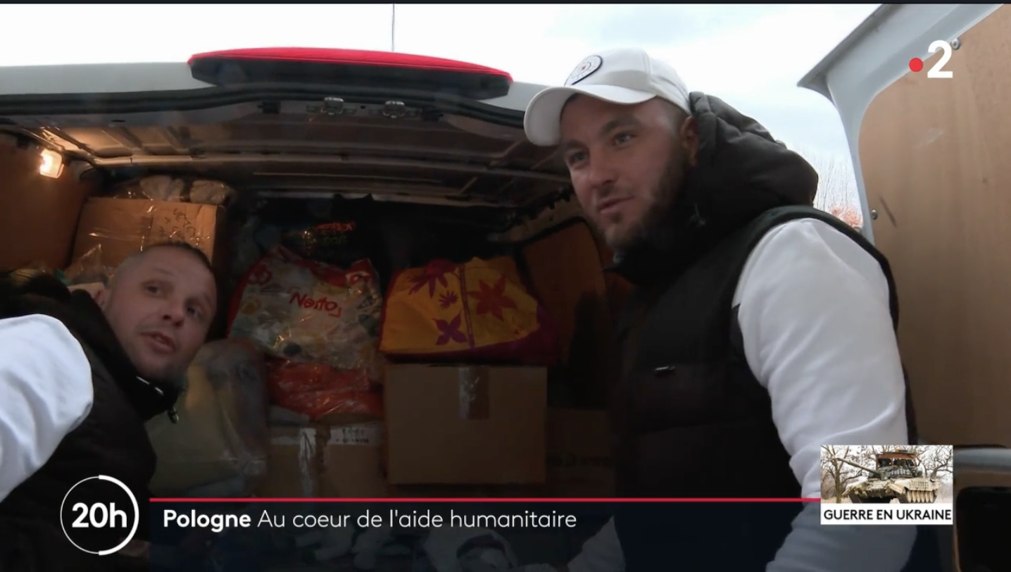 de France 2 nous emmène dans un des plus grands entrepôts en Pologne, où transite l'aide humanitaire vers l'Ukraine. Des centaines, des milliers de cartons, triés, empaquetés par des volontaires polonais. Et voilà que le reporter de France 2 tombe sur deux Français qui viennent de parcourir deux mille kilomètres, et déchargent leur camionnette. "On a fait une collecte sur Voreppe, près de Grenoble, qui a très bien marché. Du coup on a pris le fourgon, et on est venus tous les deux, voilà"