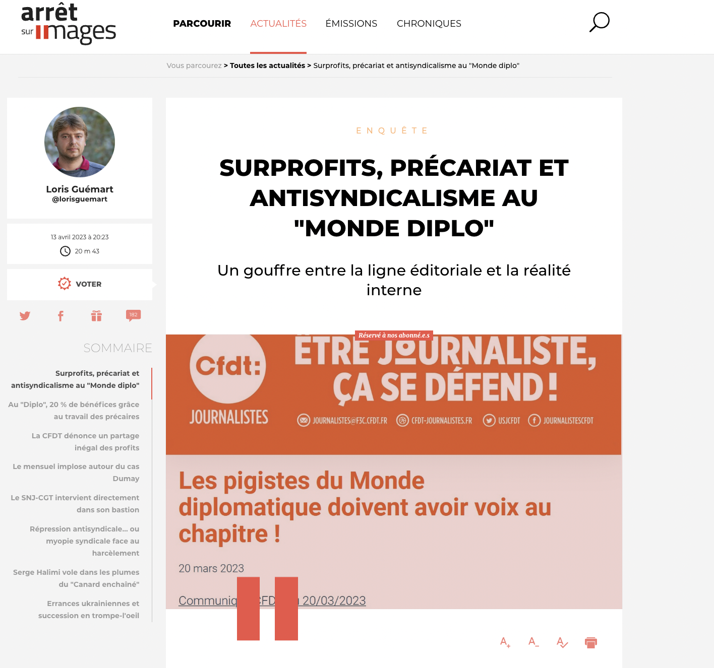 L'enquête de Loris pointe également le fait que le journal est en grande partie produit par des pigistes, statut au sujet duquel il ne faut guère être un premier prix de marxisme pour savoir qu'il revêt une bonne – voire une immense – part de précarité.