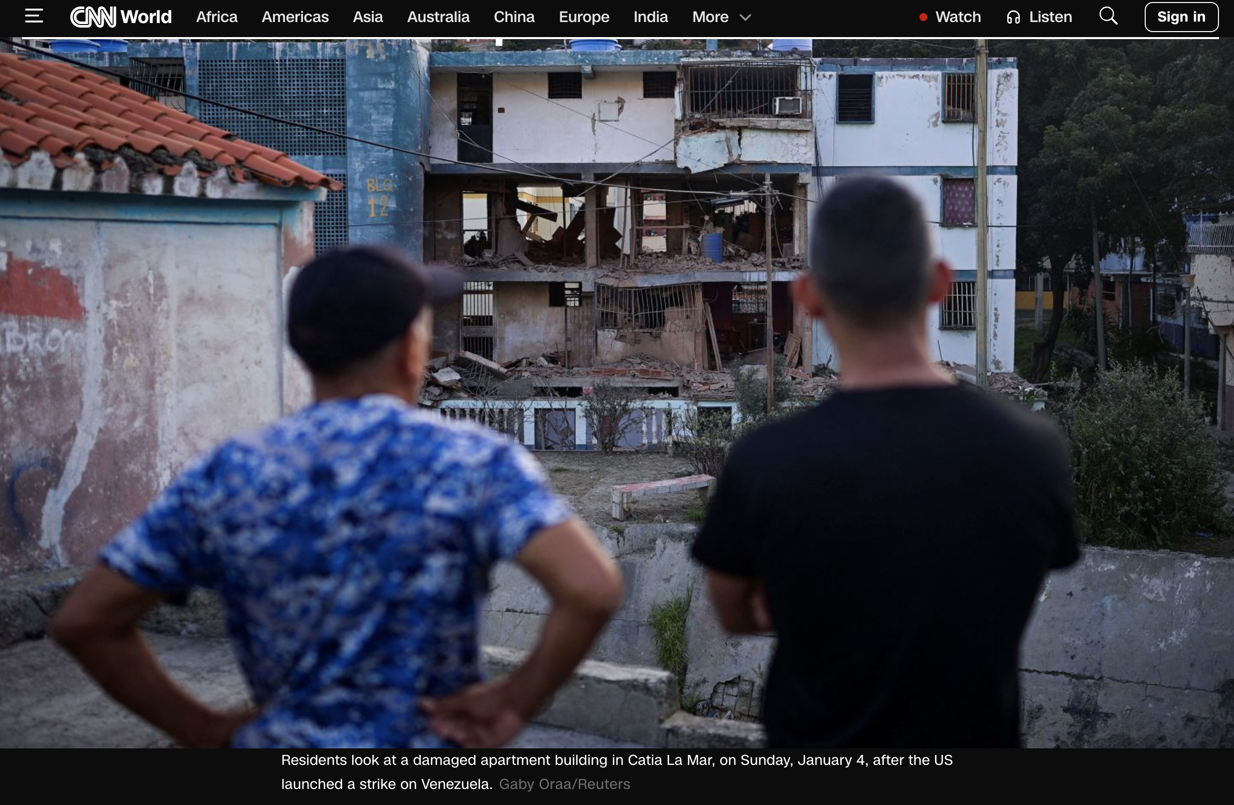 alors que les bombardements ont visé le territoire vénézuélien pose question. Et ce d'autant qu'il y a (pour le moment) au moins deux victimes civiles vénézuéliennes. L'information mise en avant est pourtant ici l'absence de mort américain et non l'existence de morts vénézuéliens et cubains, relégués en seconde place, derrière ce "mais". Y aurait-il une hiérarchisation des victimes ?