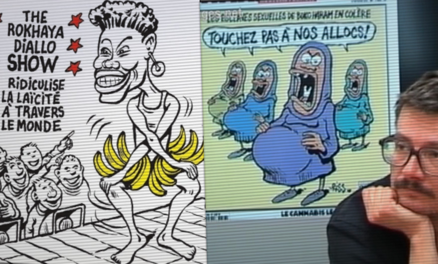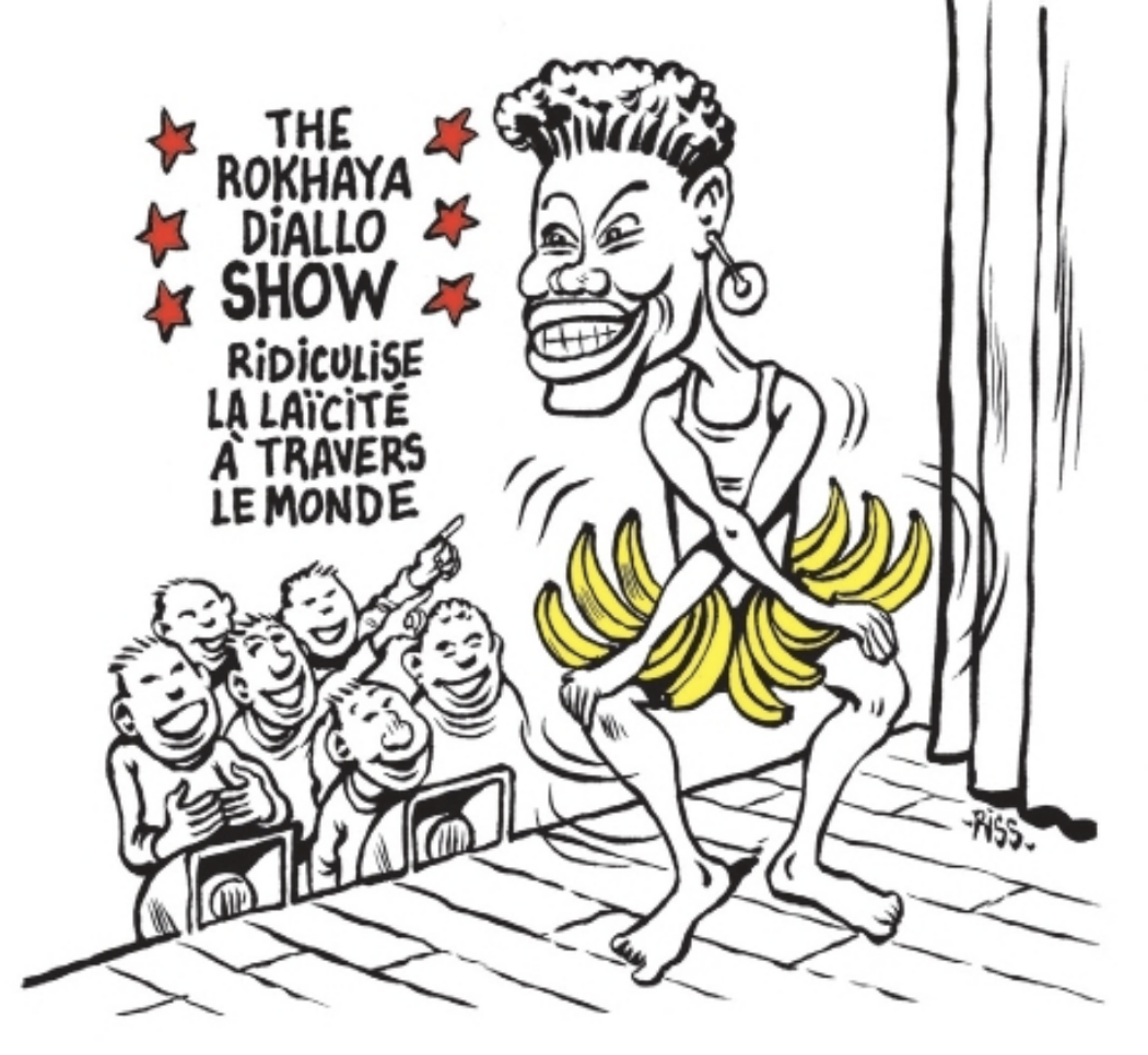 Vous avez sûrement vu passer, sur vos téléphones, pendant les fêtes de fin d'année, ce dessin représentant Rokhaya Diallo, journaliste, autrice, réalisatrice et chercheuse à l'université Georgetown de Washington, dansant sur scène, une ceinture de bananes autour de la taille, devant plusieurs spectateurs, des hommes, morts de rire.