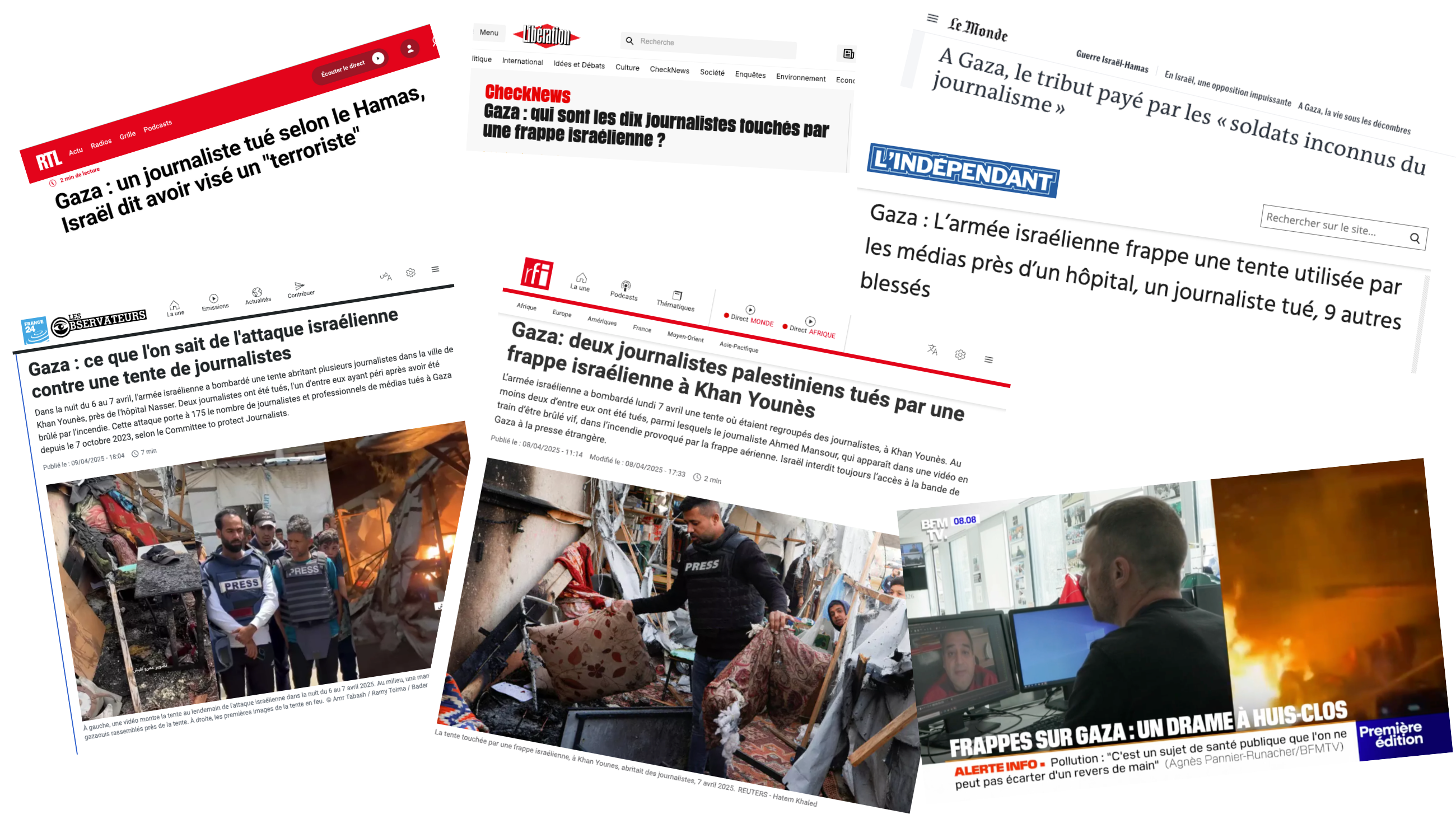 Quelques autres médias en ligne reprennent les éléments de l'AFP qui titrait dans son "urgent" [un format de dépêche] "frappe sur des journalistes à Gaza : un média proche du Jihad islamique annonce la mort d'un de ses employés"