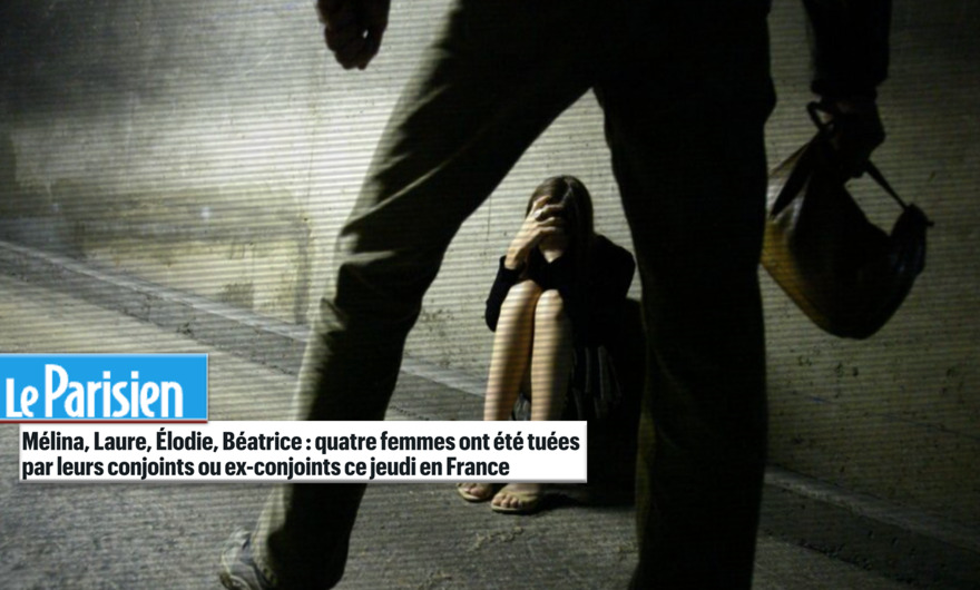 Le même jour, quatre femmes étaient tuées par leurs conjoints ou ex-conjoints en France : Laure, 32 ans, abattue devant chez elle, à Besançon, par son ex-conjoint, alors qu'elle partait travailler ; Elodie, 45 ans, tuée à l'arme blanche par son conjoint en Gironde ; Mélina, 45 ans, poignardée par son conjoint à Saint-Ciers-d'Abzac en Gironde ; Bé...