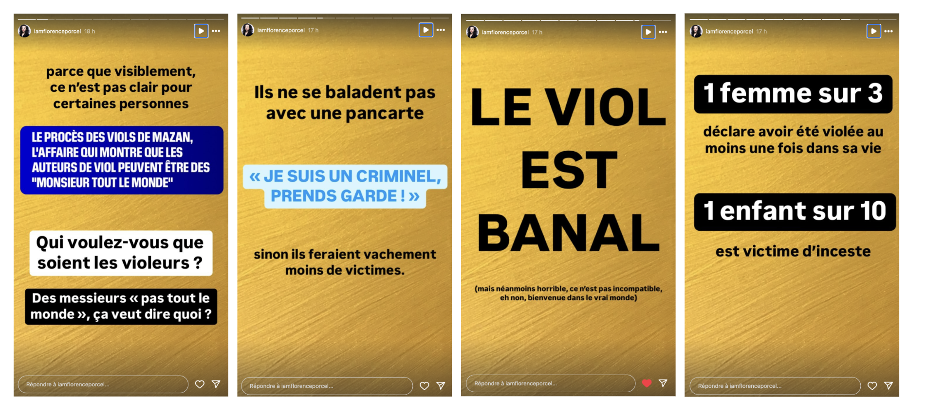 L'une des premières à s'indigner de ce traitement médiatique est Florence Porcel, figure parmi les plaignantes dans le dossier PPDA, la seule à être officiellement non-prescrite. Sur Instagram, elle a publié une succession de stories pour s'indigner de la couverture du procès. Elle interpelle BFMTV, sur son traitement des viols de Mazan : "Qui voulez-vous qu'ils soient d'autre" à part des "Monsieur Tout le Monde" ?