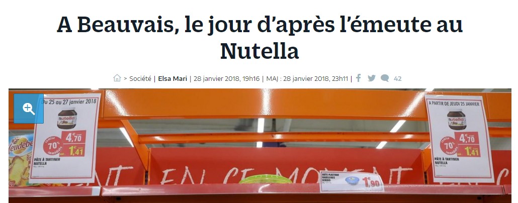 Et comment réfléchir ? En sollicitant des spécialistes. Faute de nutellologues, des généralistes feront l'affaire. Le Parisien et Franceinfo ont donc interrogé des profs de marketing, des sociologues, et des anthropologues. Ces articles débordent de réflexions passionnantes sur "les deux France", les "sociétés non sereines" , les marques iconiques, et les "conséquences inattendues". On y rappelle (et c'est utile) le taux de chômage des communes des hypermarchés où se sont produit les bousculades, 20% au minimum.
