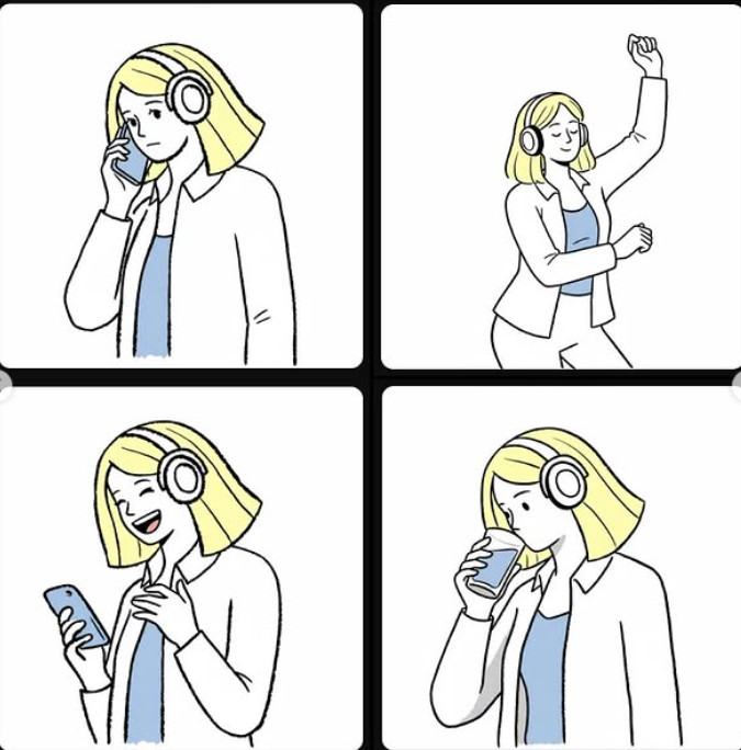 Et dessine-le "en train de boire un verre, danser, téléphoner, rire",